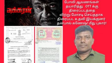 போலி ஆவணங்கள் தயாரித்து தயாரிப்பாளருக்கு தெரியாமல் திரைப்படத்தின் OTT டிஜிட்டல் உரிமம் விற்று மோசடியா!?திரைப்பட உதவி இயக்குனர் தனபால் கணேசன் மீது
