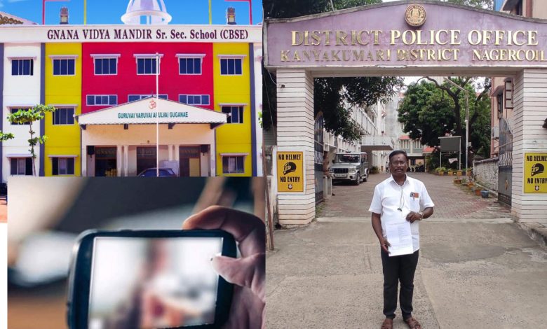 ஆபாச படங்களை காண்பித்து அதேபோல் செய்து காட்ட சொல்லி பாலியல் தொல்லை! ஞான வித்யமந்திர் சிபிஎஸ்இ பள்ளி நிர்வாக அதிகாரி மீது நடவடிக்கை எடுக்க மாணவனின் தந்தை கன்னியாகுமரி காவல் கண்காணிப்பாளரிடம் புகார்!